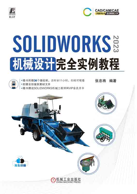 本书紧密结合实际生产应用,以众多精彩的机械设计实例为引导,详细介绍了SOLIDWORKS从模型创建,到出工程图,再到模型分析和仿真等的操作过程。本书实例涵盖典型机械零件、输送机械、制动机械、农用机械、紧固和夹具、传动机构、弹簧和控制装置等的设计;内容涵盖草图、建模、曲线/曲面、装配、钣金、焊件、工程图、仿真和应力分析等。本书紧密结合实例和实际应用进行了深入浅出的讲解。