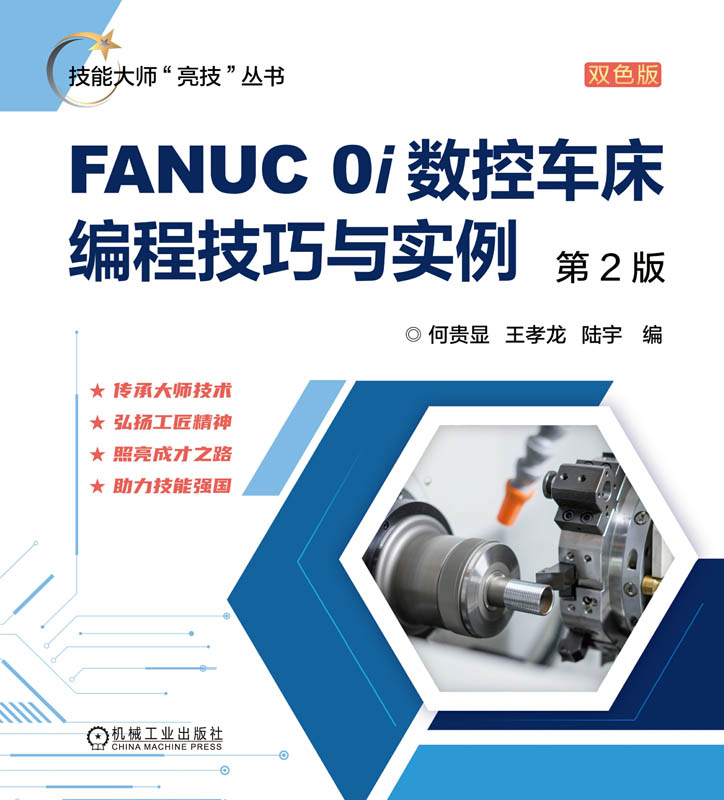 本书从一个一线实际数控机床操作者的角度,对数控编程及操作初学者容易困惑的内容进行了讲解。本书选择在工厂里应用最广泛、编程最具代表性的FANUC Series 0i-TC/TD车削系统为例进行讲解,侧重于手工编程。本书不仅对第1版中的程序进行了优化,还针对数控车削中的重点、难点,增加了十几个加工案例和加工技巧等内容。本书主要内容包括:数控机床安全操作规程,数控刀具和切削工艺的选择,数控车床编程,数控车床面板与操作,用户宏程序。本书附录还介绍了三角函数关系、数控操作面板常用术语英汉对照和非完全平方数二次根式的计算方法。