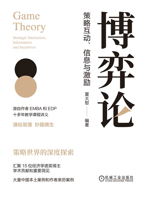 本书以通俗易懂的语言和鲜活的案例,阐述博弈论的基本理论框架和主要知识点。全书分成四大部分:第一部分主要论述在同步一次囚徒困境博弈中,尽管合作对整体而言是最优的,但不合作却是个体的最优策略。书中对困境的机理及其在现实社会生活中的具体表现做了分析,还介绍了同步一次博弈的其他一些有趣场景和案例。第二部分讨论重复博弈,围绕如何从困境走向合作展开,重点介绍在重复博弈中,自利行为和长期主义可以催生合作这一重要原理及其具体应用。同时还介绍了混合策略的基本思想。第三部分讨论序贯博弈。参与者行动有先后顺序,那些与自身利益相冲突的决策,会在其他参与者行动之后发生变化。参与者可以通过承诺行动改变竞争对手的预期,以促使其选择对自己有利的行动。第四部分是不完全、不对称信息下的博弈,主要阐述人们如何通过信号传递、信息甄别和机制设计,来缓解因信息不对称导致市场失灵所带来的逆向选择和道德风险问题,从而增进个体与社会利益。