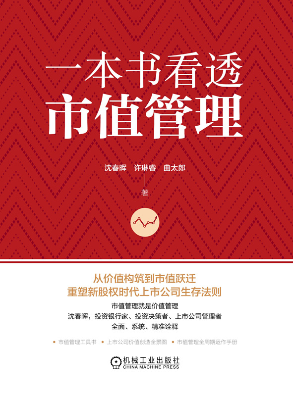 本书作者沈春晖兼具学院派和实战派双重身份,沈春晖、许琳睿、曲太郎在投资银行和一、二级市场从事投资实战工作多年,经验丰富。本书紧扣当前中国资本市场实际,遵循国家对市值管理的zui新要求,系统阐述市值管理理念的来龙去脉,按照价值创造、价值传播和价值经营三个方面具体描述市值管理的全流程实务操作,并配以zui新案例,手把手讲解如何看待市值管理和如何做好市值管理。本书对于价值创造、价值传播和价值经营进行了精准而系统化的阐述:(1)以公司的资本配置能力为牵引,以价值提升为核心来介绍价值创造工具,而非简单堆砌资本运作方式;(2)提供极其全面的市值传播方案,系统阐述如何做好信息披露和4R关系管理;(3)具体介绍如何以逆周期调节方式来进行价值经营。