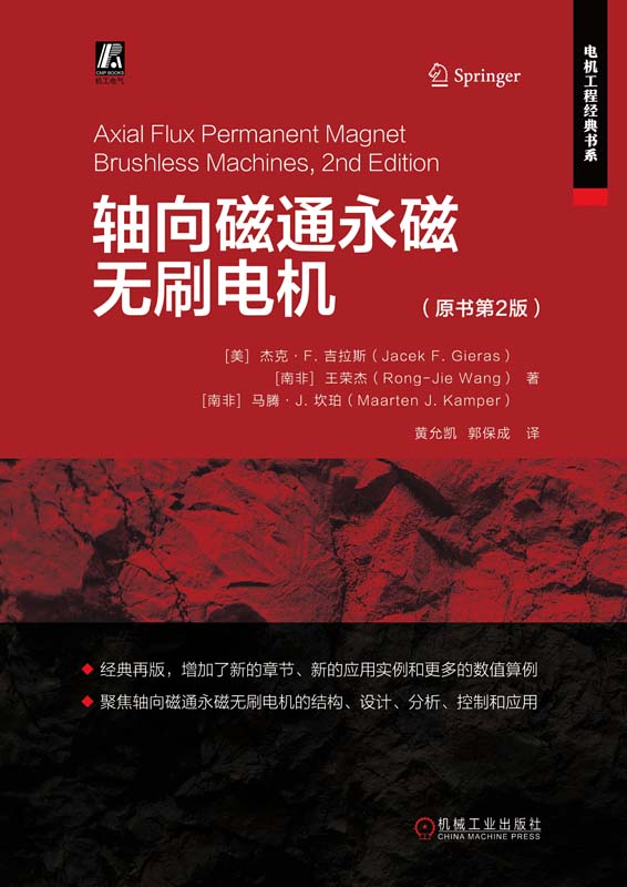 《轴向磁通永磁无刷电机(原书第2版)》内容翔实,浅显易懂,每章都配有计算案例,特别适合作为高等院校电机专业研究生教材和教辅用书,也可作为企业电气工程师、机械工程师以及相关领域技术人员的培训教材和参考书。